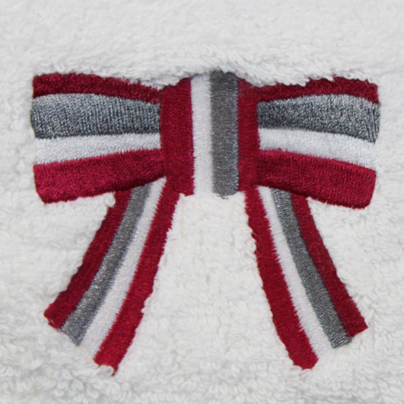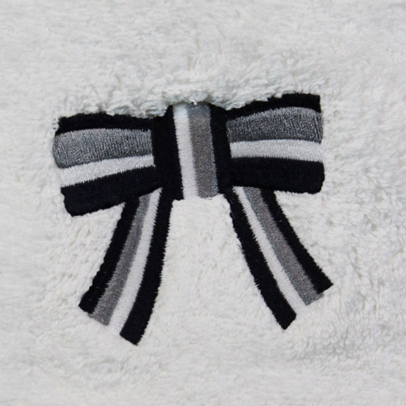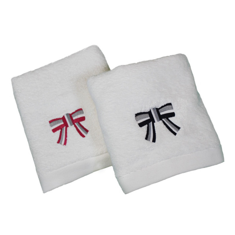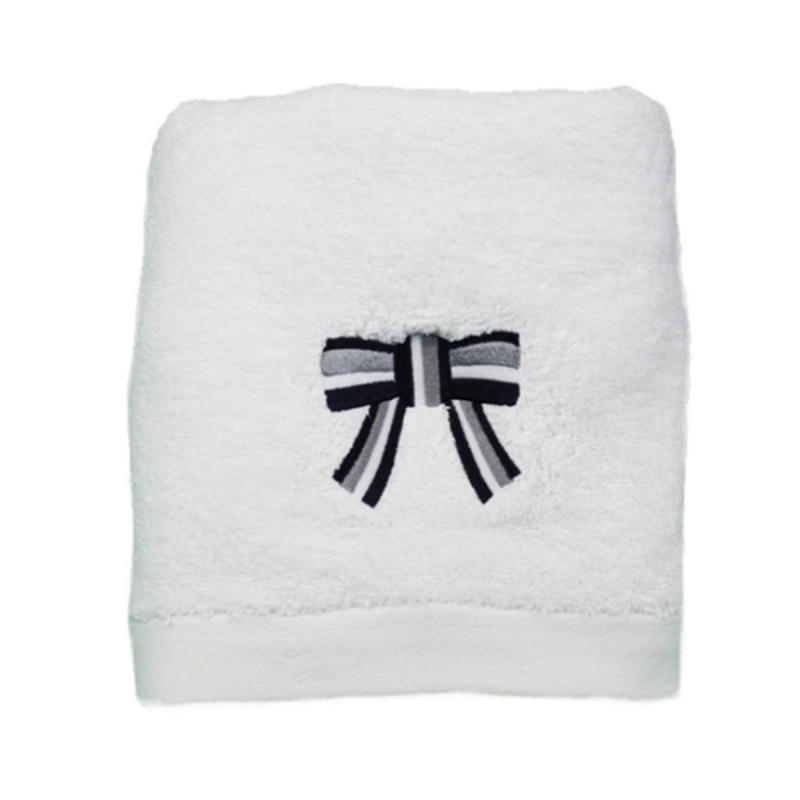 Des serviettes épaisses et moelleuses brodées d'un joli noeud rayé de couleurs assorties. Un duo élégant pour elle /pour lui.