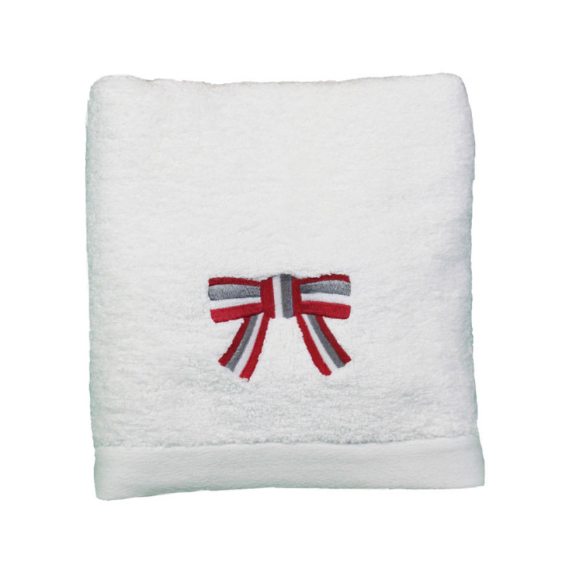 Serviette coloris blanc. Motif Noeud brodé au bas des serviettes. Brodé en France.