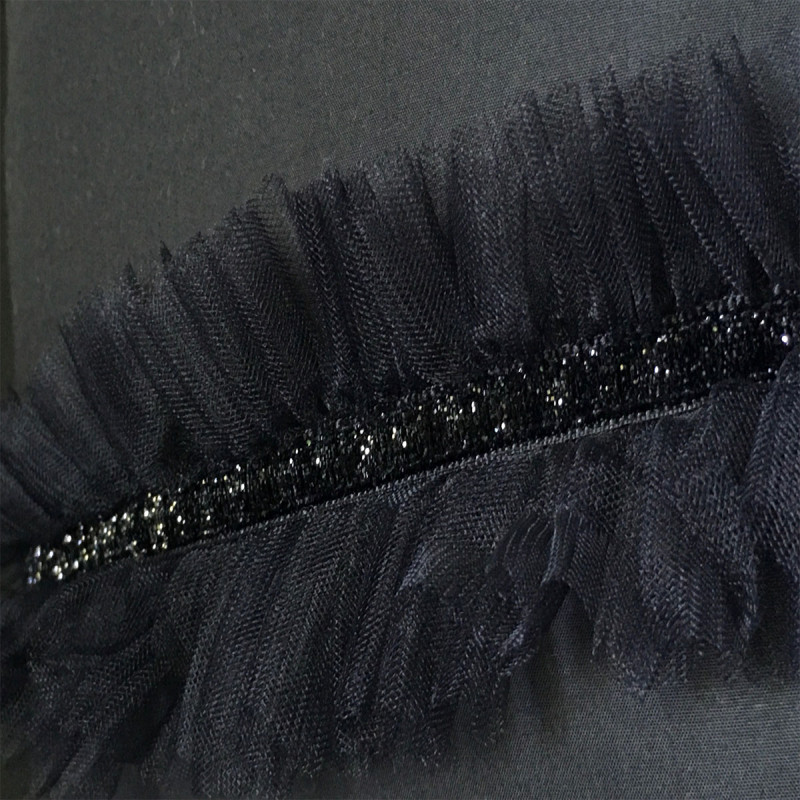 Tulle froncé parcouru en son centre par un ruban lurex brillant aux reflets scintillants.
