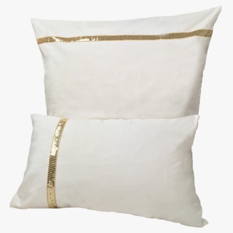 Taies de coussin : Percale pur coton 80 fils/cm2 parée d'un ruban de sequins scintillants couleur or aux reflets lumineux.